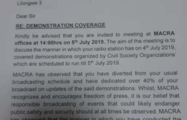 A letter by the Malawi Communication Regulatory Authority (Macra) has called for a meeting with..