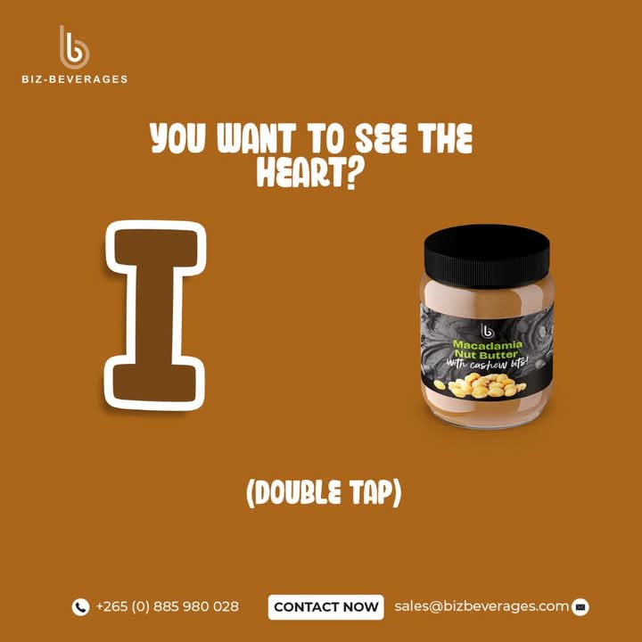 #BizBeverages #MacadamiaLove #NutButterDreams #SpreadTheLove  #TasteTheGoodness #MadeWithCare #MalawiPride