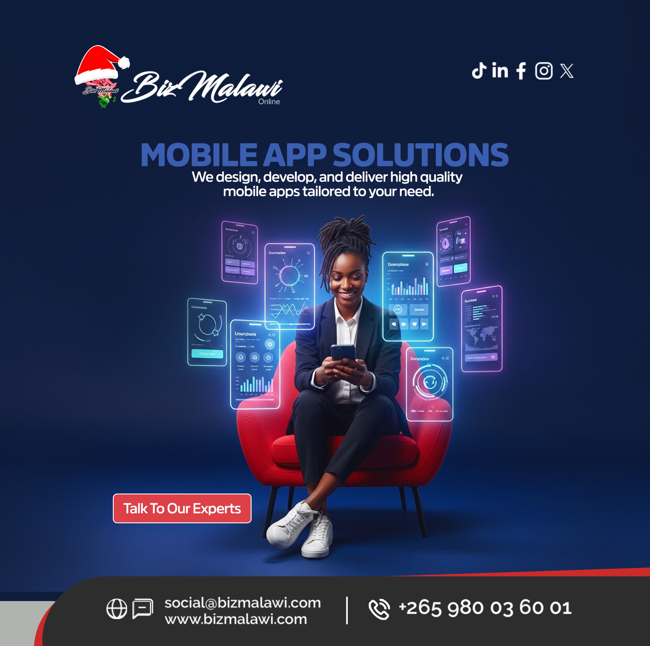 Transform your ideas into high-quality mobile apps with our expert solutions! Whether you need design, development, or delivery, we tailor our services to meet your unique needs. Let’s build the future together! #MobileApps #AppDevelopment #BizMalawi #TechSolutions #DigitalInnovation