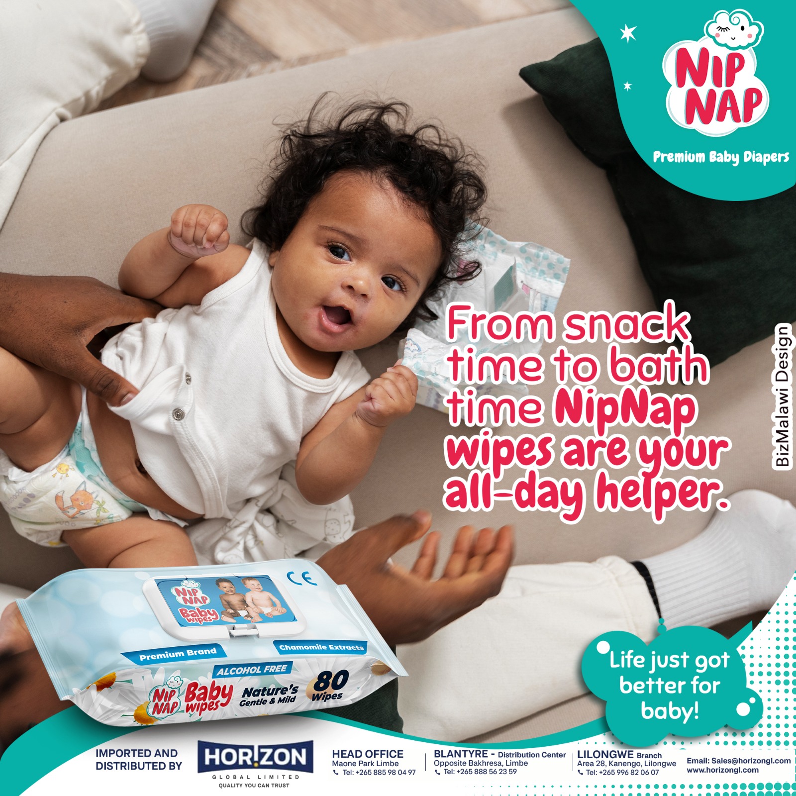 From snack time to bath time, Nip Nap baby Wipes are your best friend and all day helper!