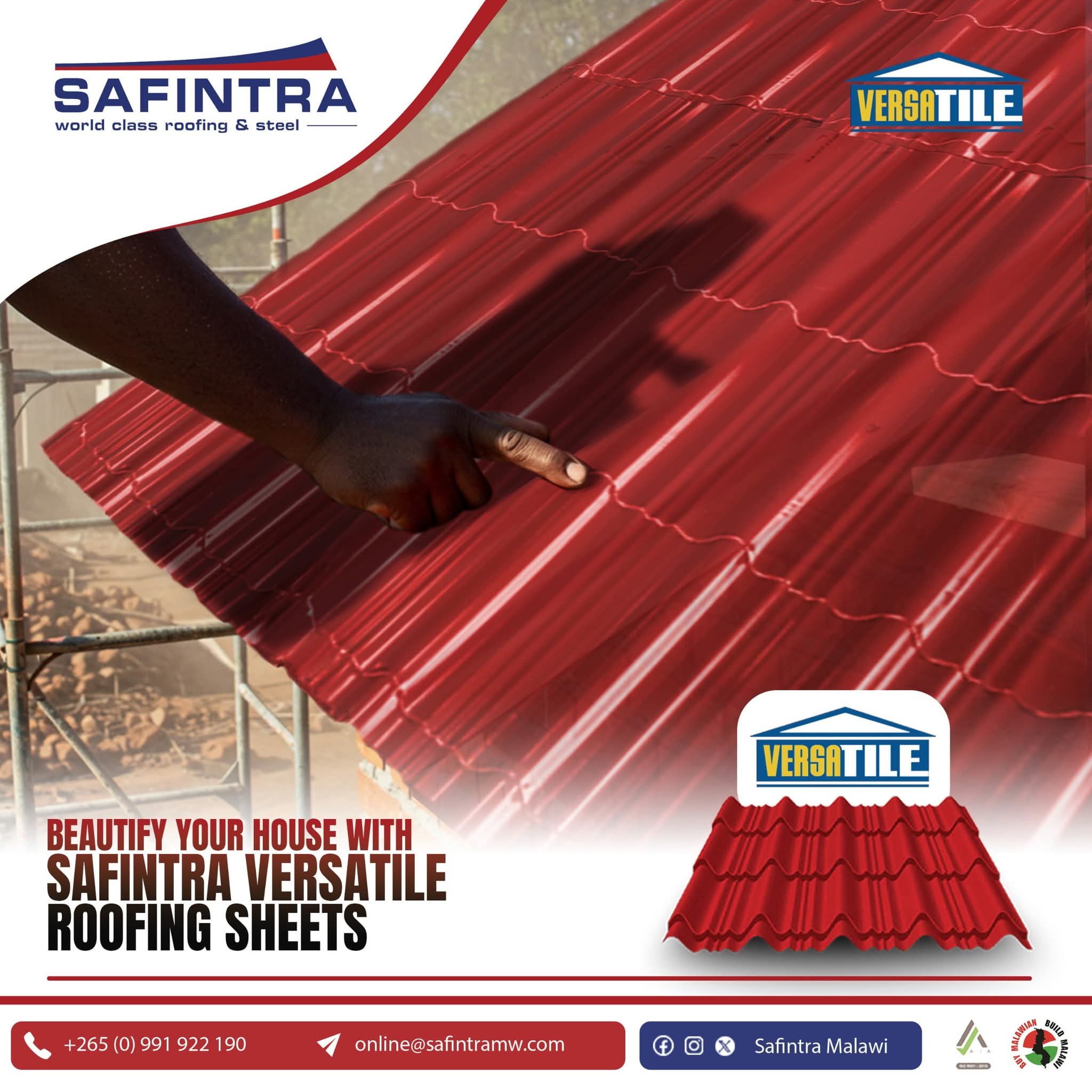 #SafintraMalawi #VersatileRoofing #WorldClassRoofing #RoofWithConfidence #BeautifulStrongRoof