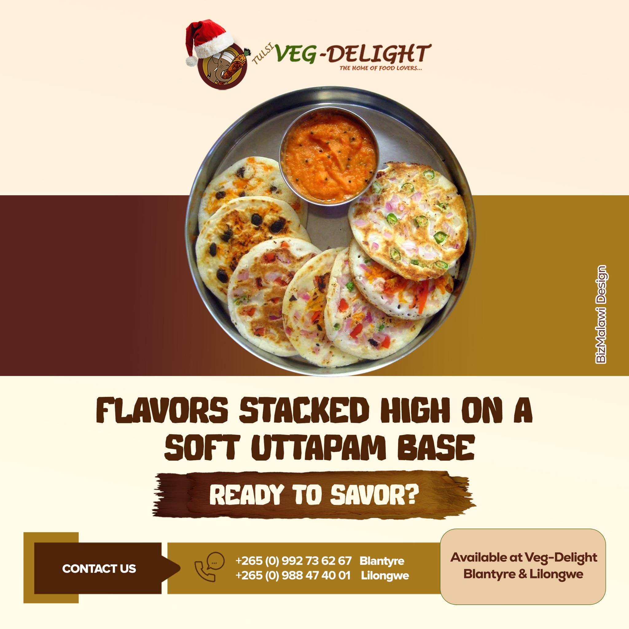 Savor the taste of South India with our Soft Uttapam. It is so fluffy, savory, and topped with fresh veggies, perfect for a wholesome and flavorful meal.