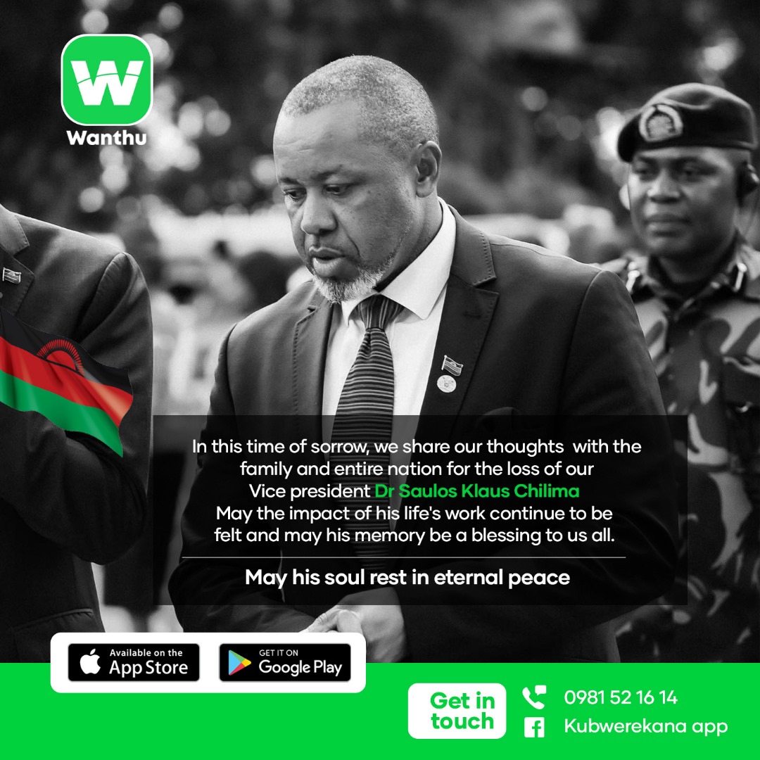 We are sending love and prayers to the family of Dr Saulos Klaus Chilima in this tough time.
